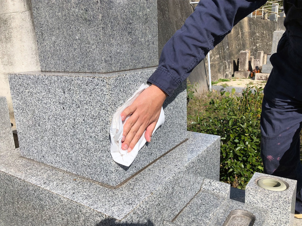 お墓丸ごとウェットタオルを使えばお墓1基を隅々まで掃除ができる。